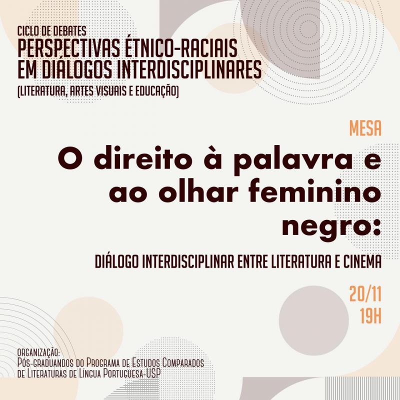 Atividade: 3a. Mesa – O direito à palavra e ao olhar feminino negro: diálogo interdisciplinar entre literatura e cinema.